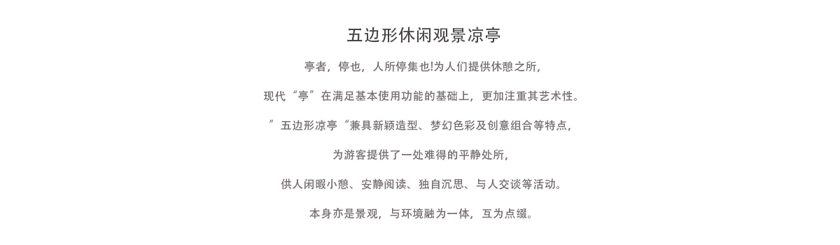 产品用途: 景区、公共绿地、乡村和文旅项目、房地产项目等;供人们休闲、观景、小憩。